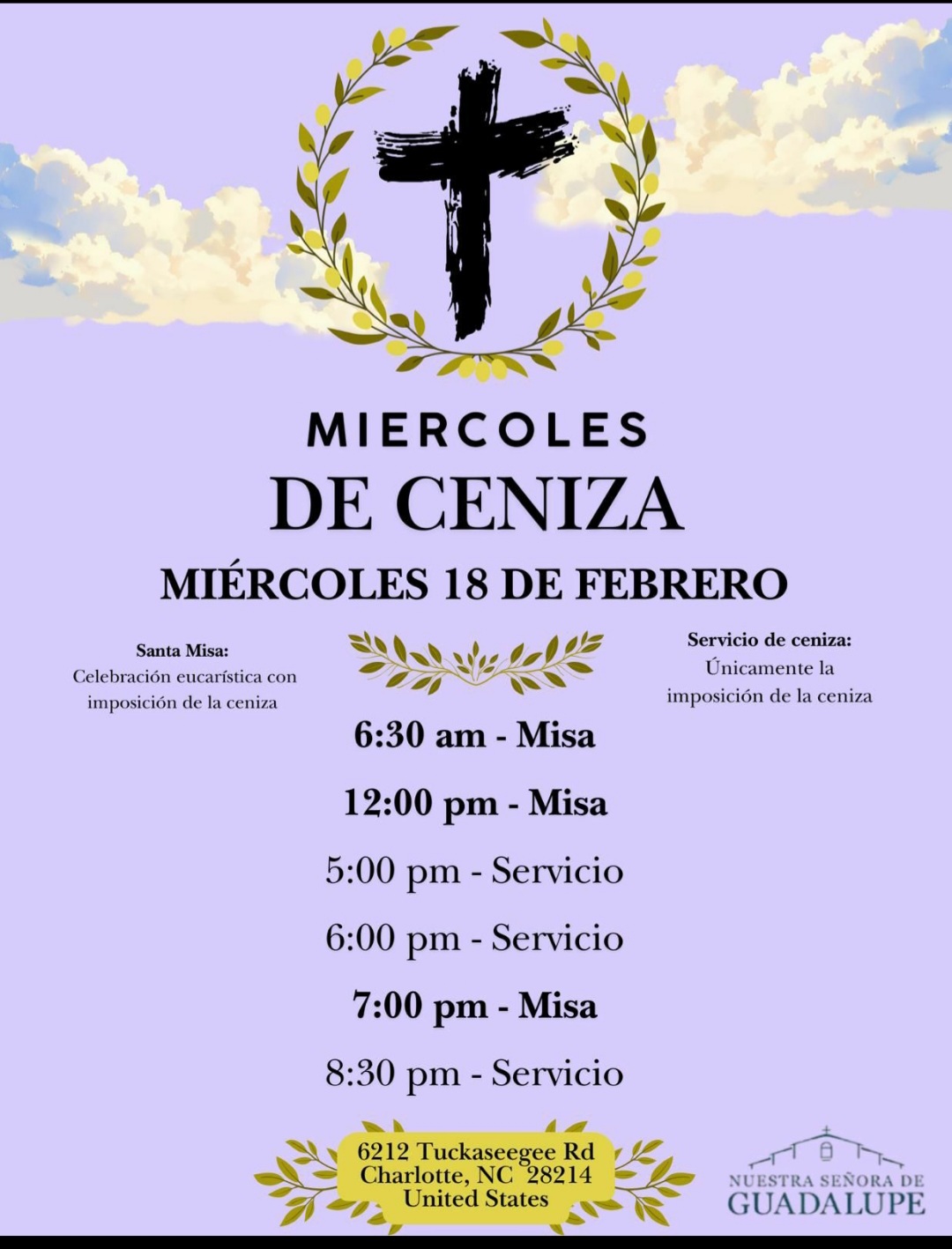 Domingo 1 de febrero – 6:30am, 8:00am, 4:00pm, y 6:00pm